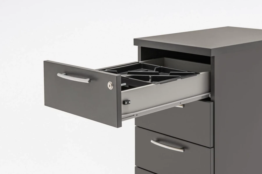 Najlepšie sa osvedčia, keď ich zostavíte spolu so stolmi, pretože vtedy zlepšujú funkčnosť pracovných miest. Praktické priestranné zásuvky, minimalistický dizajn a odolné materiály robia z kontajnerov Basic skutočne základné prvky vybavenia každej kancelárie.
