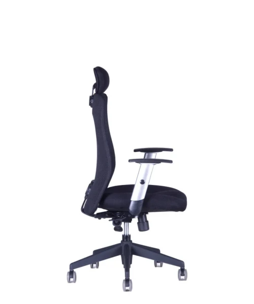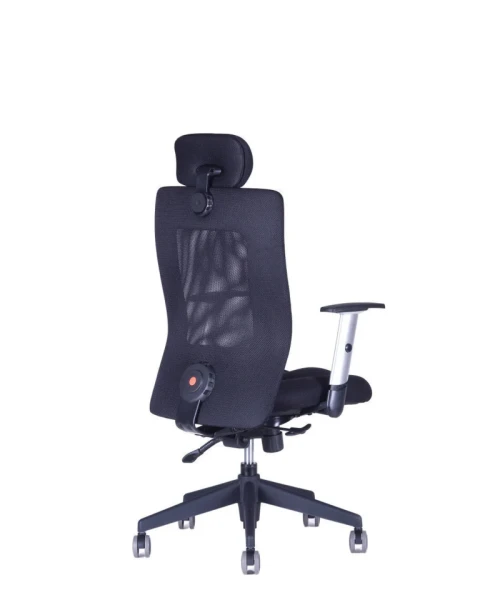 Otočná kancelárska stolička so sieťovaným operadlom. Synchrónny mechanizmus umožňuje zafixovať sklon operadla v ktorejkoľvek polohe a nastavenie sily protiváhy podľa telesnej hmotnosti.