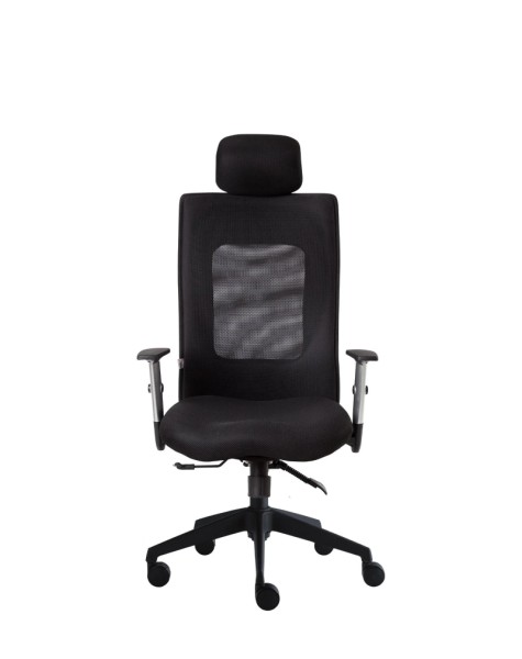 Otočná kancelárska stolička LEXA je vybavená synchrónnou mechanikou s nastavením odporu hojdania a priedušným sieťovaným operadlom s možnosťou aretácie vo zvolenej polohe. Vďaka pohodlnému čalúnenému sedadlu z čiernej priedušnej látky je stolička vhodná na celodennú kancelársku prácu.