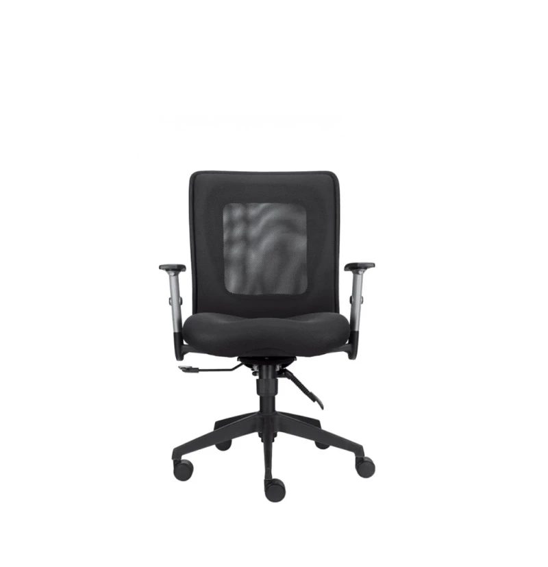 Otočná kancelárska stolička LEXA je vybavená synchrónnou mechanikou s nastavením odporu hojdania a priedušným sieťovaným operadlom s možnosťou aretácie vo zvolenej polohe. Vďaka pohodlnému čalúnenému sedadlu z čiernej priedušnej látky je stolička vhodná na celodennú kancelársku prácu.