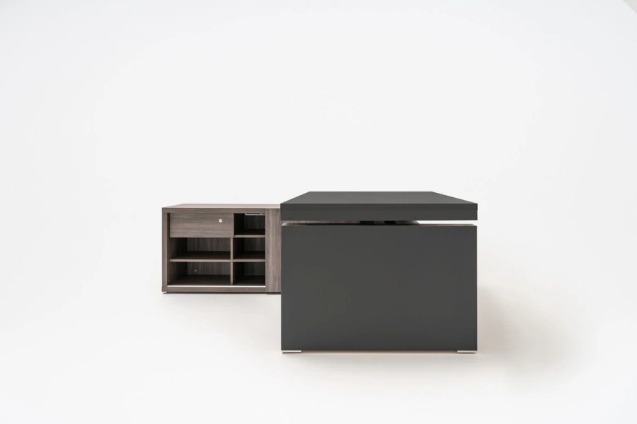 Klasický a elegantný manažérsky stôl Mito podčiarkne štýl každej miestnosti. Kolekcia je určená pre náročných ľudí, ktorí si cenia kvalitu a pohodlie. Stôl je vybavený elektrickou výškovo nastaviteľnou pracovnou doskou a poskytuje možnosť pracovať v sede aj v stoji.