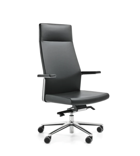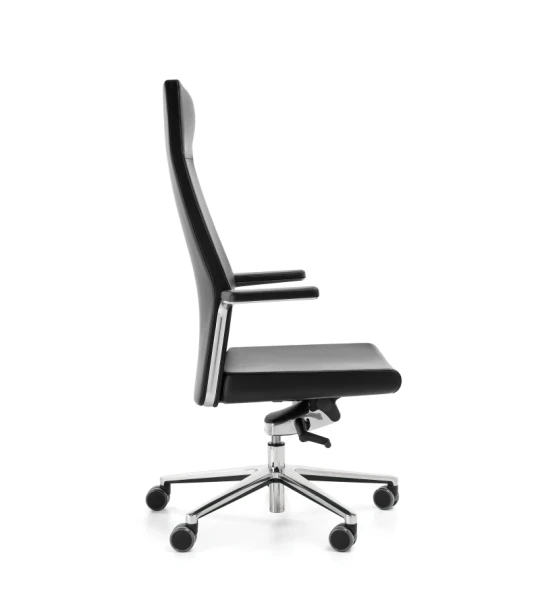 Štýl a elegancia - nadčasový dizajn Klasická kolekcia prvotriedneho nábytku vrátane kancelárskych kresiel s vysokým a nízkym operadlom a konferenčných kresiel: otočných a posuvných. Kancelárske kreslá s vysokými operadlami spájajú sofistikovaný štýl s najvyšším komfortom. Dizajnér elegantne skombinoval precízne čalúnené povrchy s hliníkovými prvkami. Konferenčná verzia sa dobre hodí do zasadacích miestností, zatiaľ čo otočná verzia doplní kancelárie vedúcich pracovníkov. Ideálne riešenie pre miestnosti s vysokým štandardom. Celú sériu dopĺňajú pohovky, kreslá a stoly.