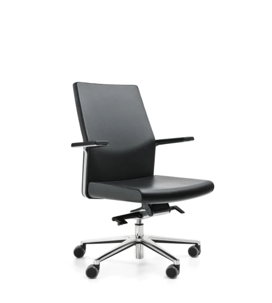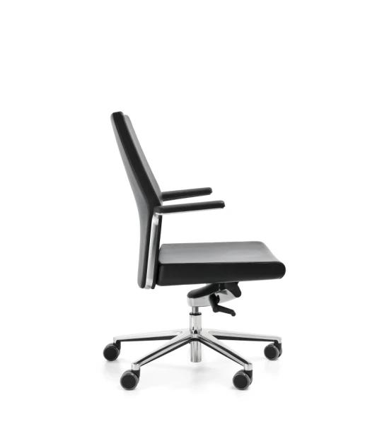Štýl a elegancia - nadčasový dizajn Klasická kolekcia prvotriedneho nábytku vrátane kancelárskych kresiel s vysokým a nízkym operadlom a konferenčných kresiel: otočných a posuvných. Kancelárske kreslá s vysokými operadlami spájajú sofistikovaný štýl s najvyšším komfortom. Dizajnér elegantne skombinoval precízne čalúnené povrchy s hliníkovými prvkami. Konferenčná verzia sa dobre hodí do zasadacích miestností, zatiaľ čo otočná verzia doplní kancelárie vedúcich pracovníkov. Ideálne riešenie pre miestnosti s vysokým štandardom. Celú sériu dopĺňajú pohovky, kreslá a stoly.