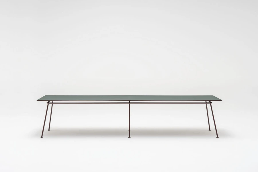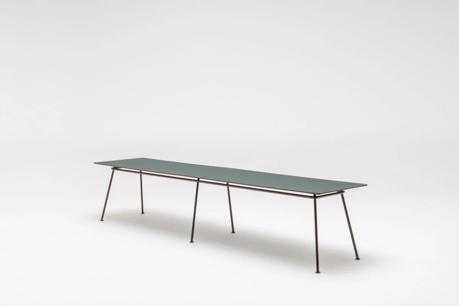Najnovší prírastok do rodiny New School - stôl typu lavica. Jeho charakteristickým znakom je podlhovastá, dvojitá pracovná doska. S dĺžkou 2400 alebo dokonca 3600 mm bude pohodlný pre väčšie skupiny používateľov a výborne sa hodí na tímovú prácu, porady a konferencie. Jednoduché tvary, rámy z ohýbaných rúrok, lino pracovné dosky a intenzívne farby sú spoločné znaky všetkých stolov z rodiny navrhnutých spoločnosťou Form Us With Love. Vďaka nim budú lavicové stoly dokonale dopĺňať aranžmány so stolmi a sedacími súpravami z kolekcie New School. Výnimočne dobre sa uplatnia v kancelárskych, vzdelávacích a verejných interiéroch, kde sa pri práci (a jedle) stretávajú väčšie skupiny. Pracovné dosky potiahnuté linom sú odolné voči odtlačkom prstov, bakteriostatické a ľahko sa čistia, čo zvyšuje funkčnosť stola inštalovaného vo verejnom interiéri.