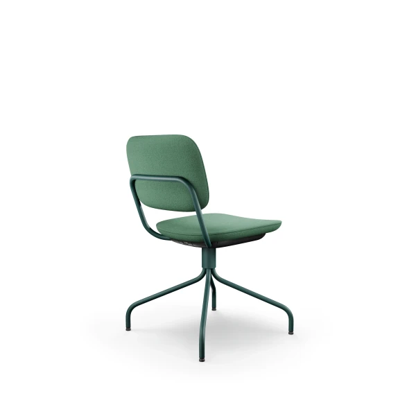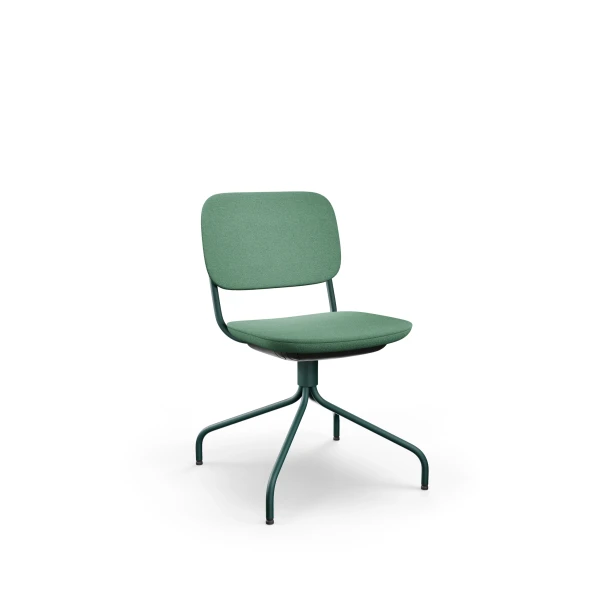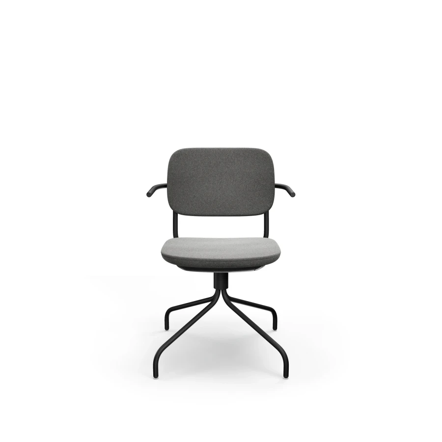 Je vybavená kovovým „pavúčím“ rámom na klzákoch, ktorý je nielen stabilný, ale aj vizuálne výrazný. Sedadlo a operadlo sú čalúnené bez použitia kovových sponiek, s plastovými výplňami z recyklovaného polypropylénu. Vhodná do kancelárií, zasadacích miestností aj zdieľaných pracovných priestorov.