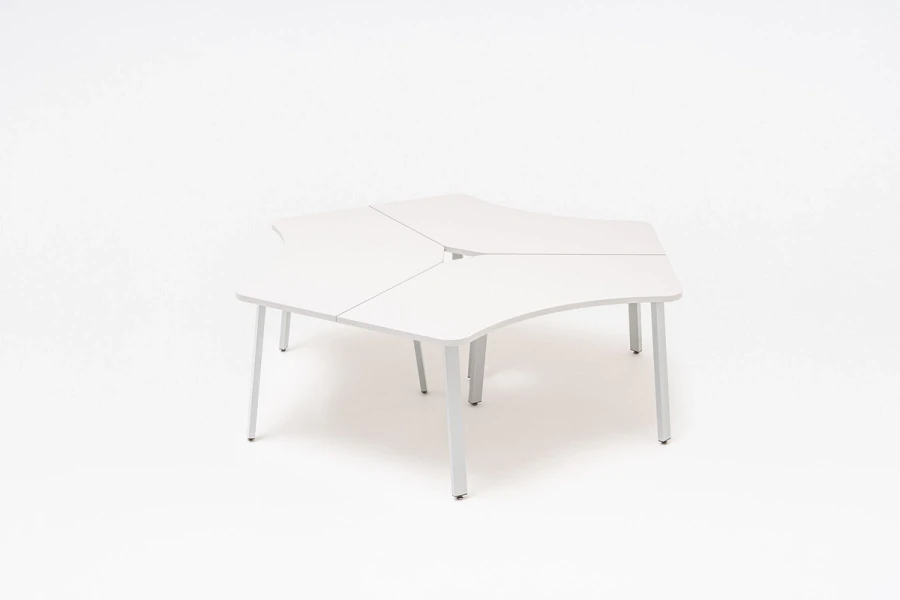 Zostava podporuje spoluprácu a zároveň ponúka každému používateľovi pohodlný pracovný priestor. Spojením troch stolov do jedného celku sa navyše efektívne využíva dostupný priestor, čo z nej robí ideálne riešenie pre moderné kancelárie.