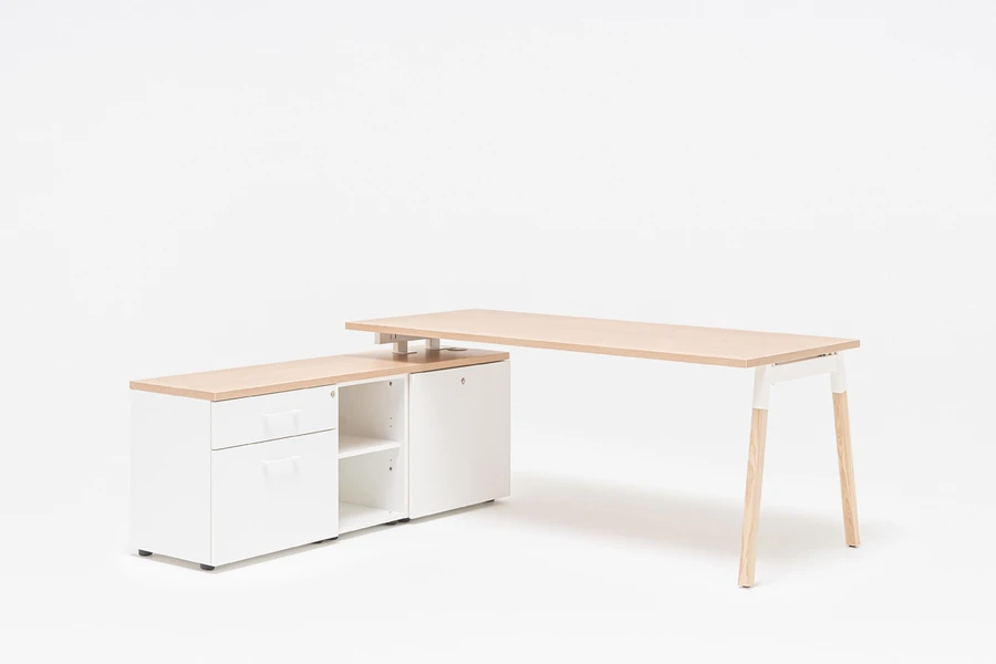 Ogi W je pracovný stôl pre zamestnancov, kde kombinácia prírodného dreva a kovových detailov vytvára nezameniteľný efekt. Jaseňová povrchová úprava nôh dodáva teplo a útulnosť domácemu pracovnému priestoru.