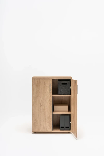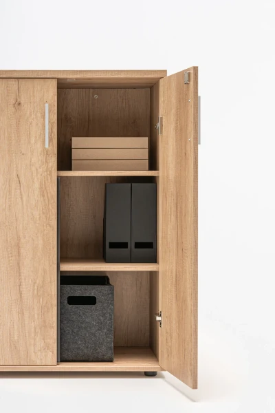 Rovnako ako celá séria, aj skrinka Quando bola navrhnutá s dôrazom na detail. Poskytuje kancelárii štýlový vzhľad a zvyšuje pohodlie pri práci. Skriňa je vyrobená z dosky MFC, je pevná, odolná a zároveň elegantná. Vďaka svojmu jednoduchému tvaru nebude dominovať priestoru okolo seba.
