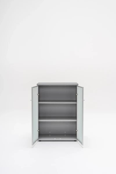 Vitrína je prvok kancelárskeho vybavenia, ktorý prináša funkčnosť a dokonalú estetiku. Sklenená predná časť, ktorá zdôrazňuje prestížny charakter kolekcie, umožňuje vystaviť uložené predmety.