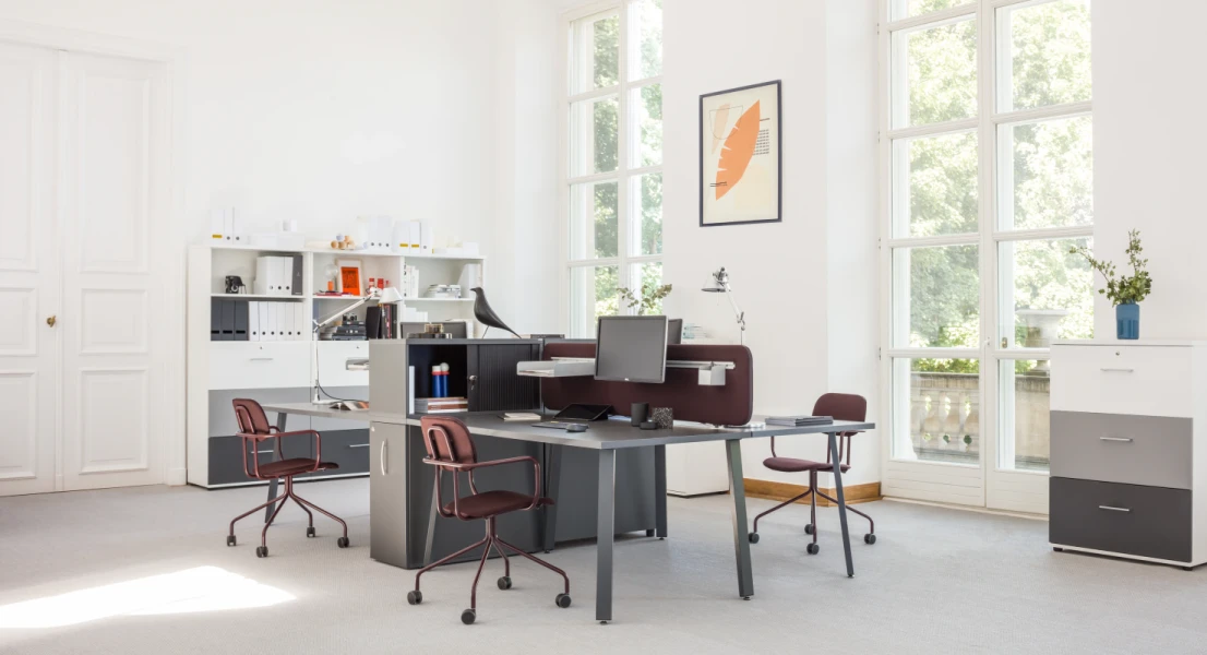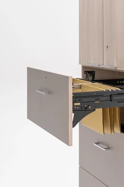 Skrine so zásuvkami na dokumenty a závesné zakladače sú nielen súčasťou vybavenia recepcií a kancelárií, ale aj pracovní a domácich kancelárií. Skrine umožňujú ukladať dokumenty a udržiavať organizovaný pracovný priestor.