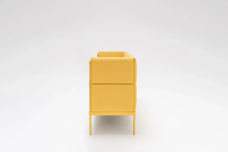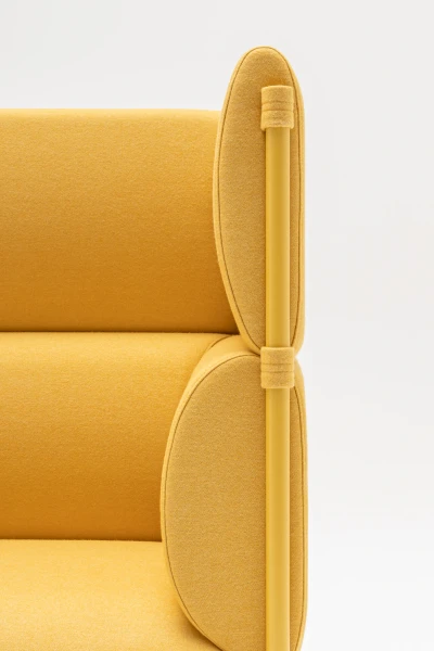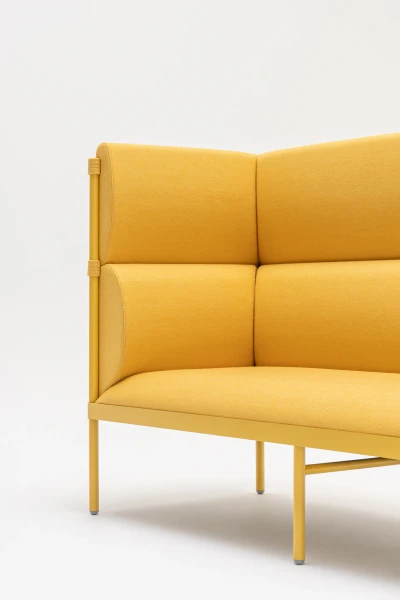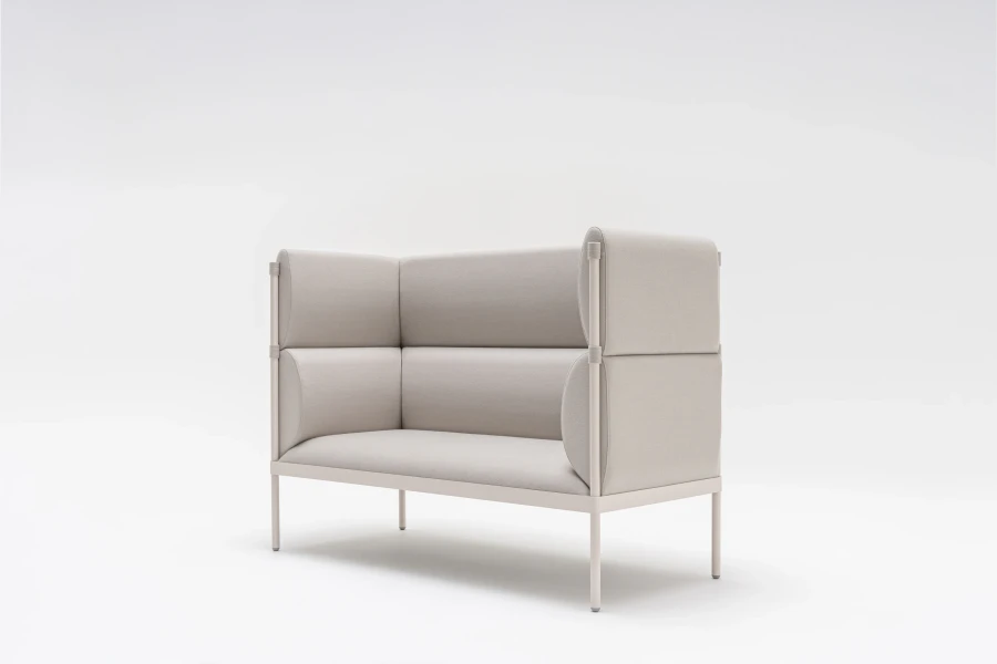 Sedadlo a operadlo sú čalúnené kvalitnou PUR penou a pružinovou výstuhou, poskytujú pevné, no komfortné sedenie. Vysoký operadlový panel nie je len dizajnovým prvkom – vytvára poloprywatnú klímu, tlmí hluk a podporuje súkromie užívateľov. Elegantná výška na vysokých nohách uľahčuje vstávanie a zaručuje ľahké manipulovanie s nábytkom – rám navyše znižuje množstvo plastových prvkov, čo podporuje udržateľnosť.