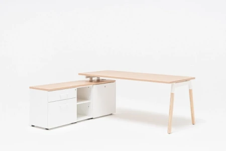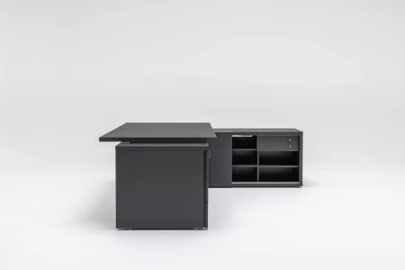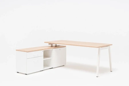 Operatívne a manažérske stoly sú k dispozícii aj s integrovaným úložným nábytkom. Skrinky a podstavce rozširujú pracovný priestor a uľahčujú udržiavanie poriadku na pracovisku.