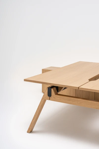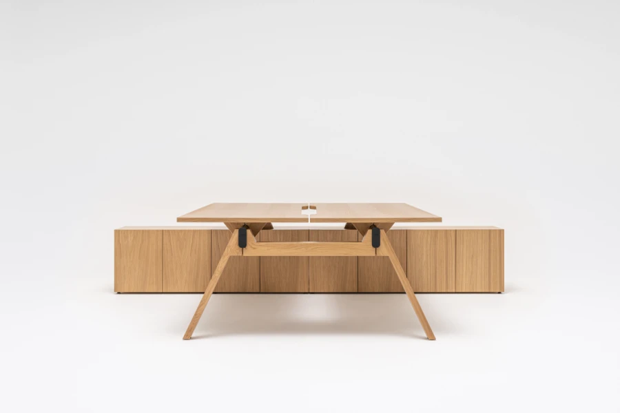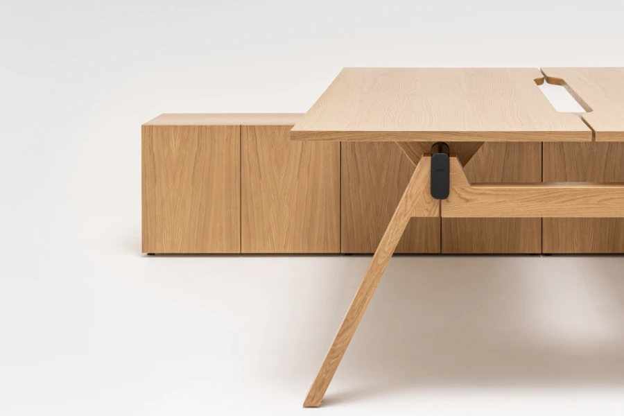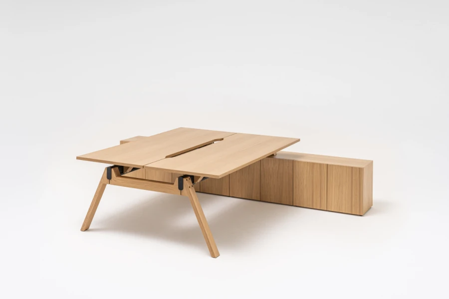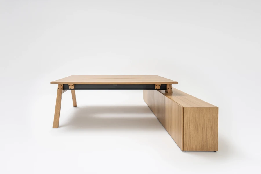 Nohy a pracovná doska sú k dispozícii v troch odtieňoch dubového dreva plus vždy elegantný čierny laminát Fenix s úpravou proti odtlačkom prstov. V laviciach Viga sa stretávajú vysoké ergonomické štandardy a príjemné pracovné miesto: posuňte tímovú prácu na úplne novú úroveň!