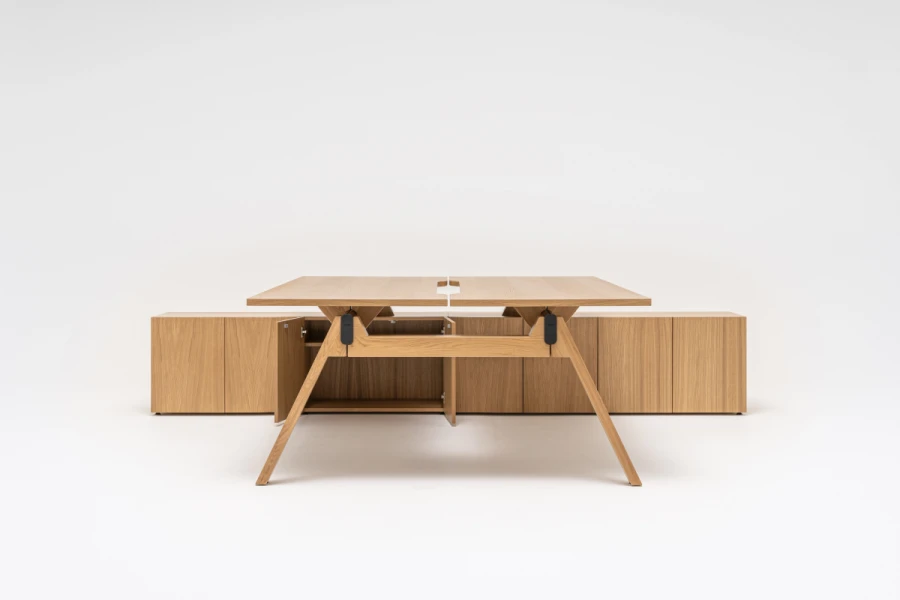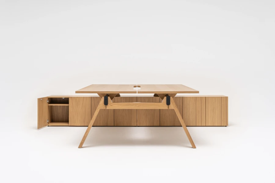 Cesta v čase od tradičných drevených stolov k trendovým rámom z extrudovaného hliníka. Dve pracovné miesta Viga so všetkými výhodami tejto rady v jednom kuse nábytku.