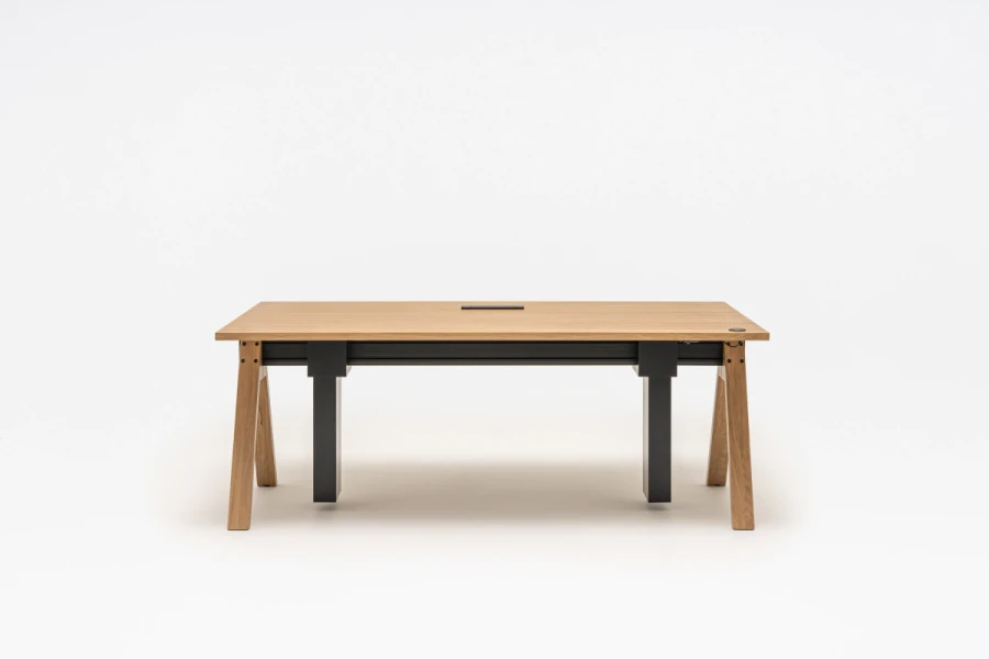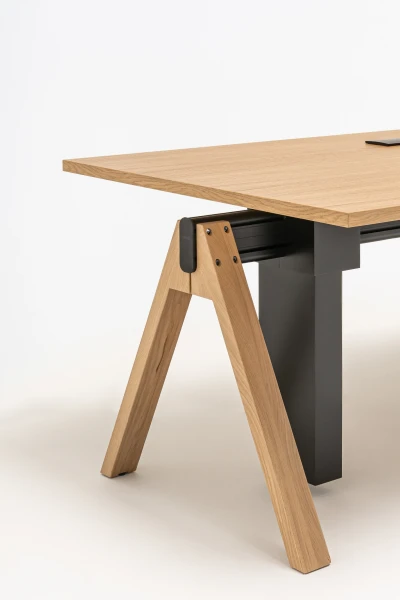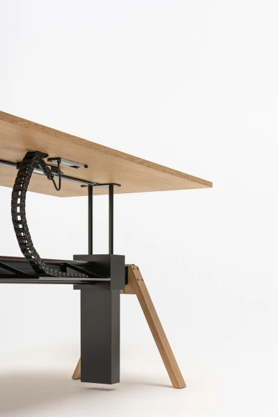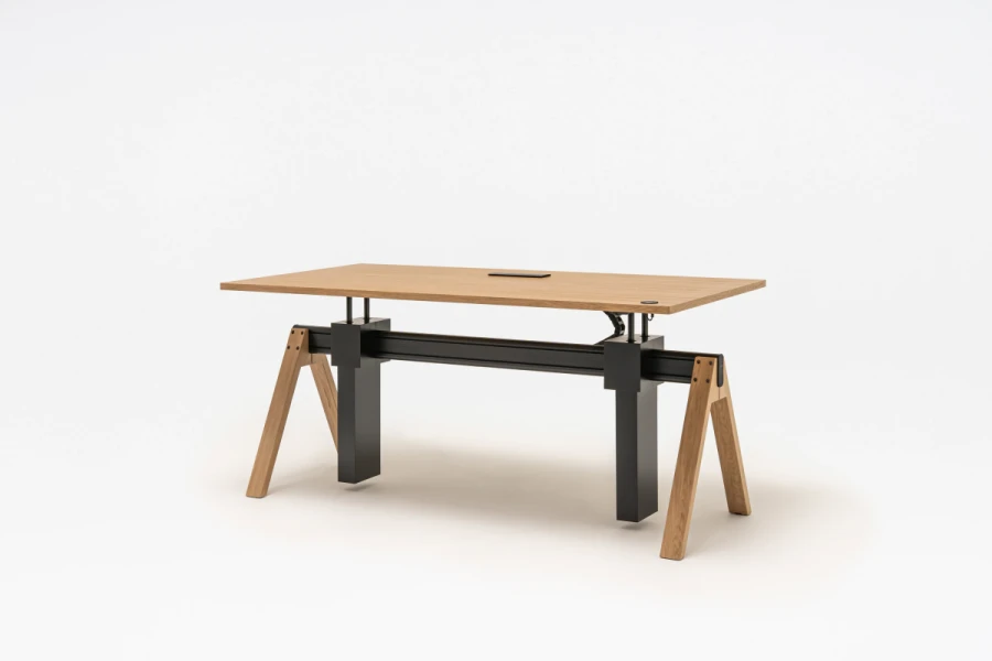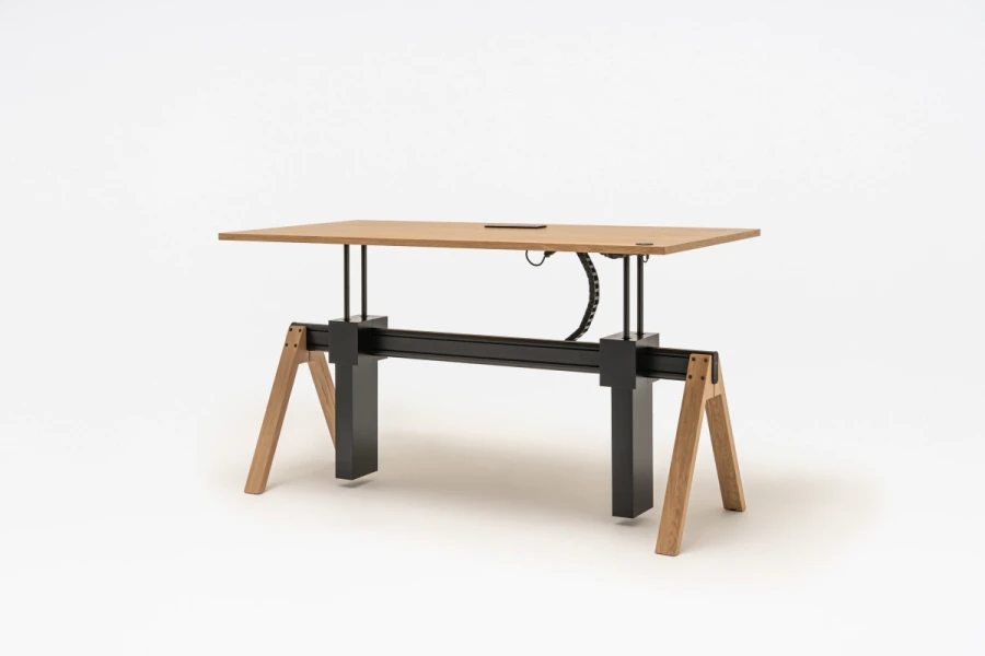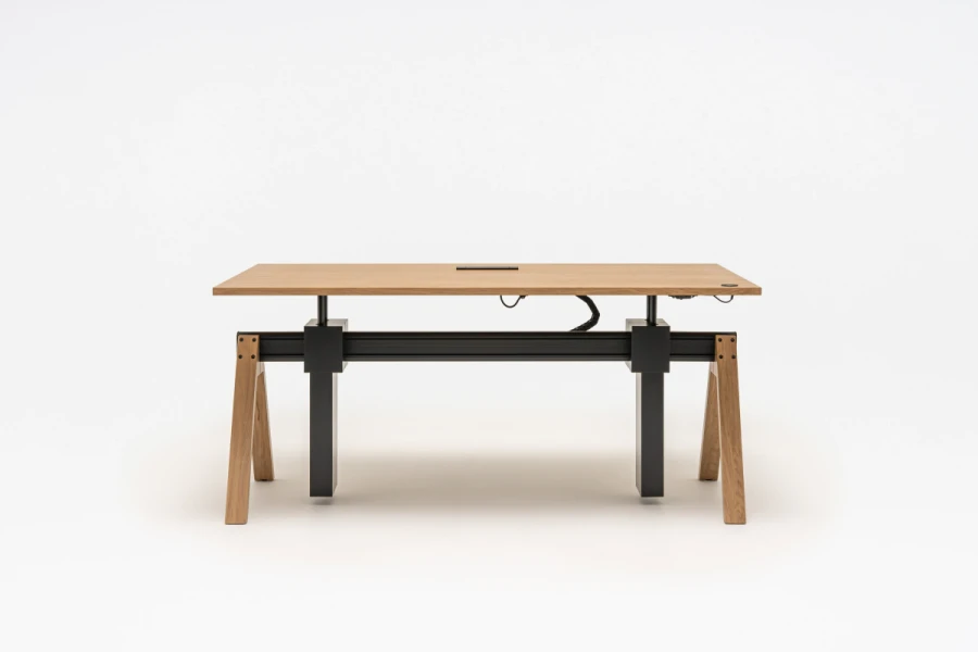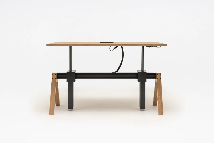 Manažérsky stôl Viga s nastaviteľnou výškou je odpoveďou na funkčné potreby moderných manažérskych kancelárií a kancelárskych priestorov a ich používateľov. Možnosť nastavenia pracovnej dosky umožňuje pracovať v režime sedenia a státia, čím sa predchádza negatívnemu vplyvu dlhodobého sedenia na zdravie. Zároveň sa zachovala charakteristická forma celej kolekcie Viga s oporou na trojuholníkových nohách a hliníkovom nosníku.