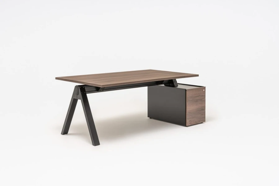Manažérsky stôl Viga sa dodáva v niekoľkých veľkostiach s voliteľnou bočnou manažérskou skrinkou, ktorá pomôže udržať poriadok v dokumentoch a kancelárskych predmetoch. Vždy vychádza zo svojho ikonického extrudovaného hliníkového nosníka, ktorý sa prezentuje ako ľahký a zároveň robustný.