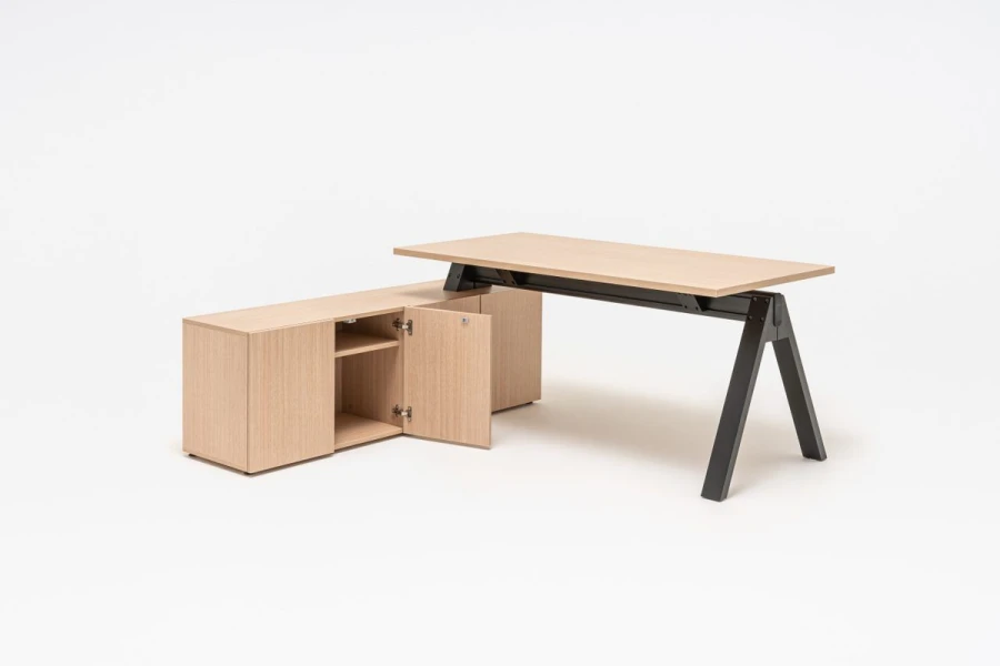 Pri písacích stoloch z radu Viga operative sa surové priemyselné línie hliníkového jadra spája vo veľkej harmónii s teplým a priateľským drevom použitým na pracovnej doske alebo nohách.