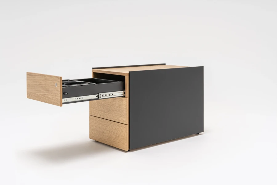 Vďaka kombinácii rôznych odtieňov dubového dreva so vždy elegantným laminátom Fenix s úpravou proti odtlačkom prstov sa podstavce hodia do každého interiéru bez ohľadu na dominantný štýl.
